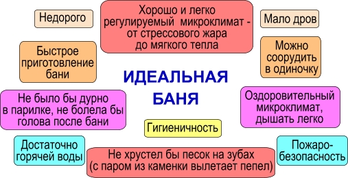 "Идеальная" баня(вариант)Все стремятся к идеалу, но всем известно, что, к сожалению, идеал недостижим.В этом плане поиск идеальной (ИБ) бани может оказаться очень долгим, и, кроме того, у разных людей формируются свои идеалы, зависящие от образа и уровня жизни, взглядов, психики и т.д. У меня, например, сформировались два идеала бань. 1. Прийти к Василию Ляхову и пусть меня попарят (он или его ребята) в керамической парилке (клубная баня с услугой пармейстера). 2. У себя на даче мне нужна гигиеническая баня, чтобы помыться в любое время после потной работы и чтобы она была недорогая в постройке, поскольку пользоваться буду только в тёплое время года (семейно-дачная баня, собственное обслуживание). |