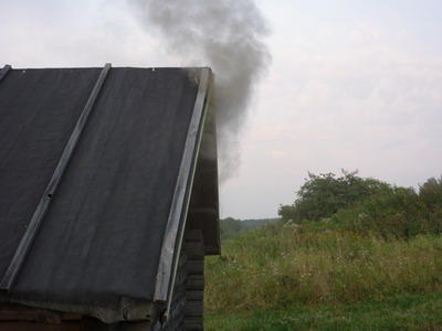 Баня №1 - идёт бурый дым - в очаге много воды, летучие уходят в трубу.